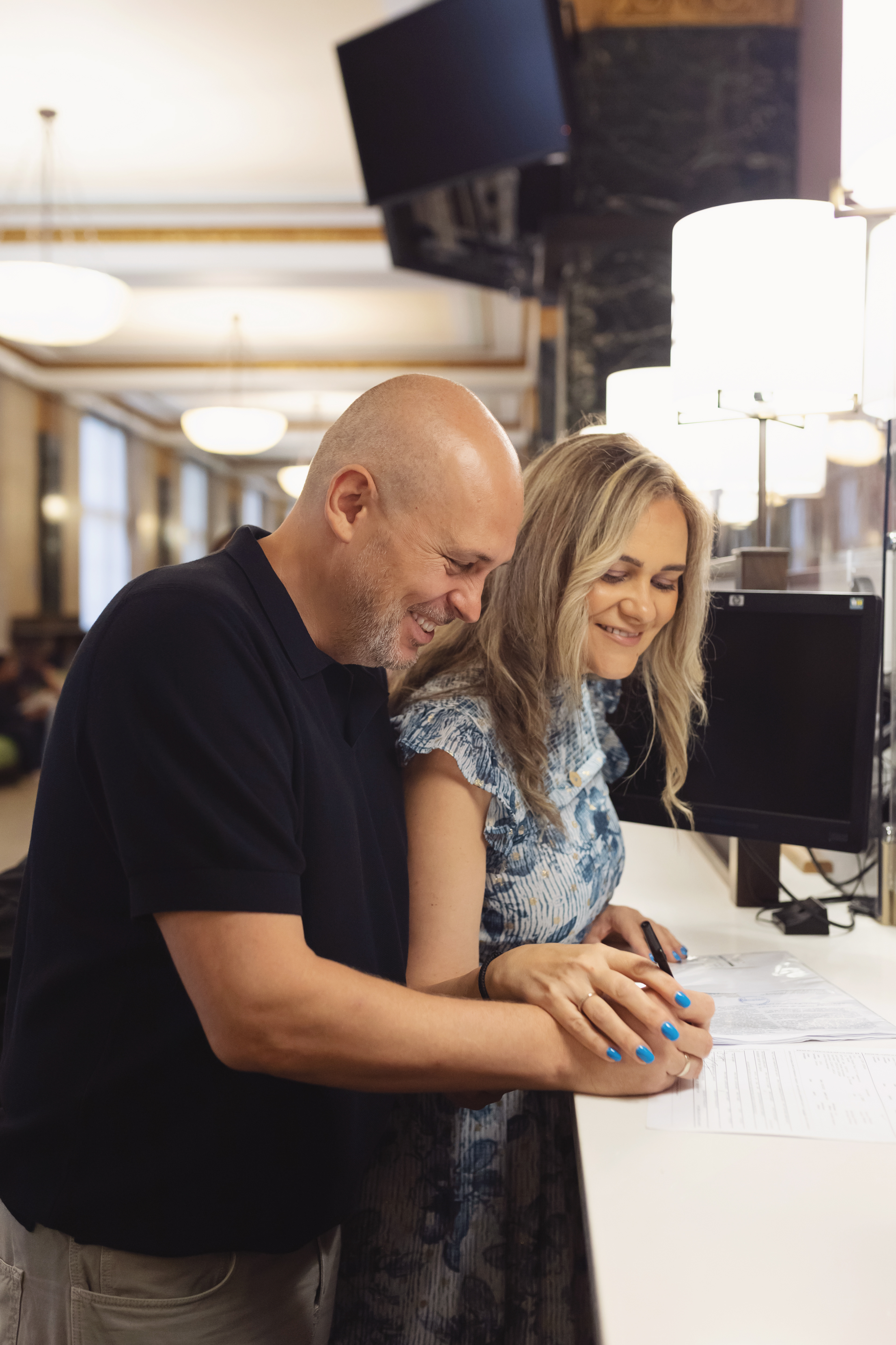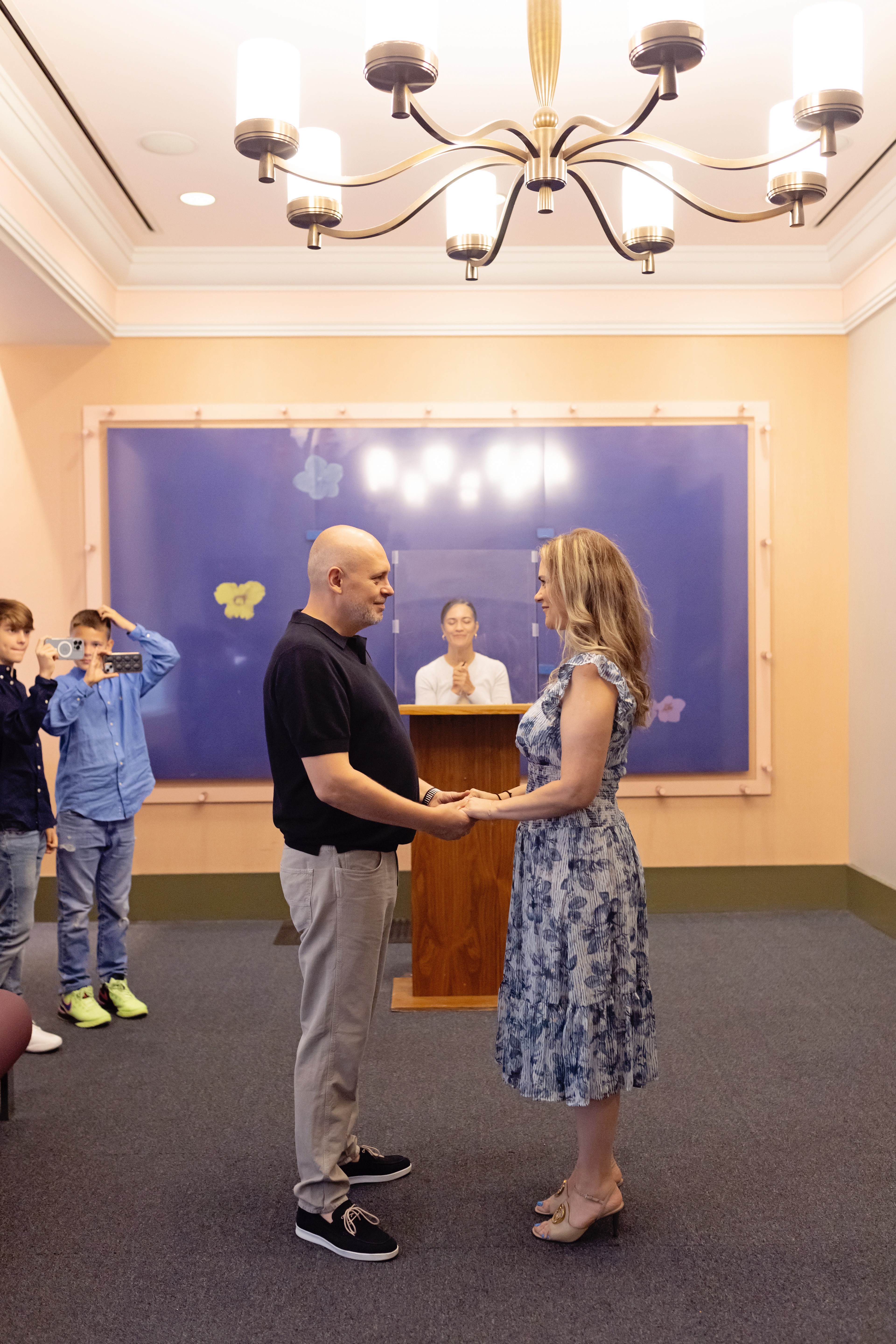 We met for the first time in front of the State Office Building. Their two sons were with them, and you could see the mix of happiness and nerves in all of them. The ceremony was quick but deeply emotional—I could feel their love both as a couple and as a family.